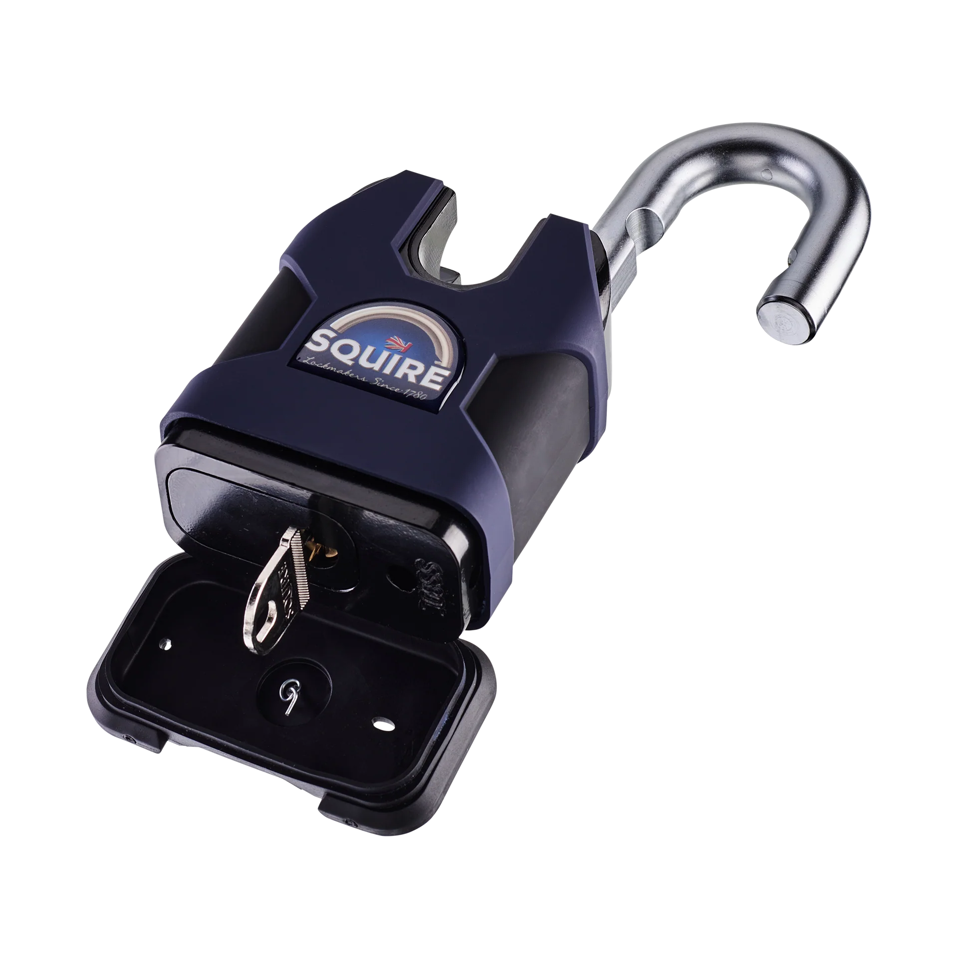 The Squire SS80CS is a premium high-security padlock. Constructed with an 80mm solid hardened steel lock body, and 16mm diameter hardened boron alloy steel closed shackle, this CEN level 6 accredited padlock has been meticulously engineered to provide exceptional protection for your valuable assets.